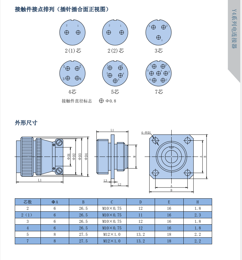 Y4小体积螺纹锁紧连接器,体积小,质量轻,螺纹连接,插拔灵活,插拔无需空间,对准大径后直接螺纹固定,一般铝合金材料,化学镀镍表面处理。一般用于仪器仪表线路的连接。