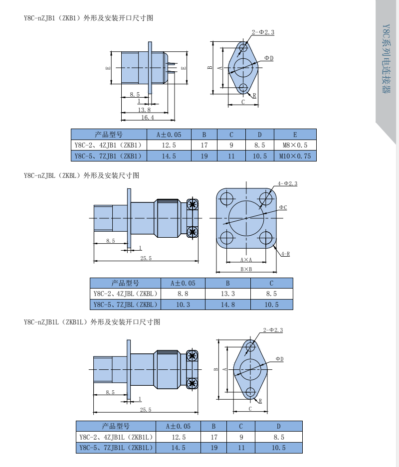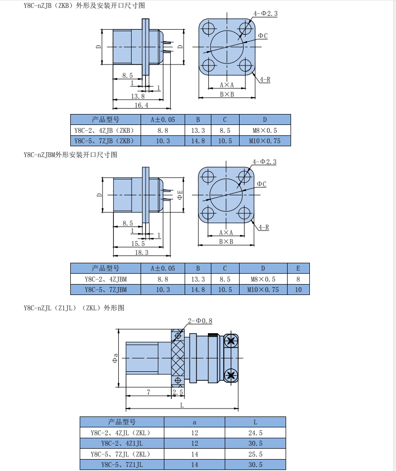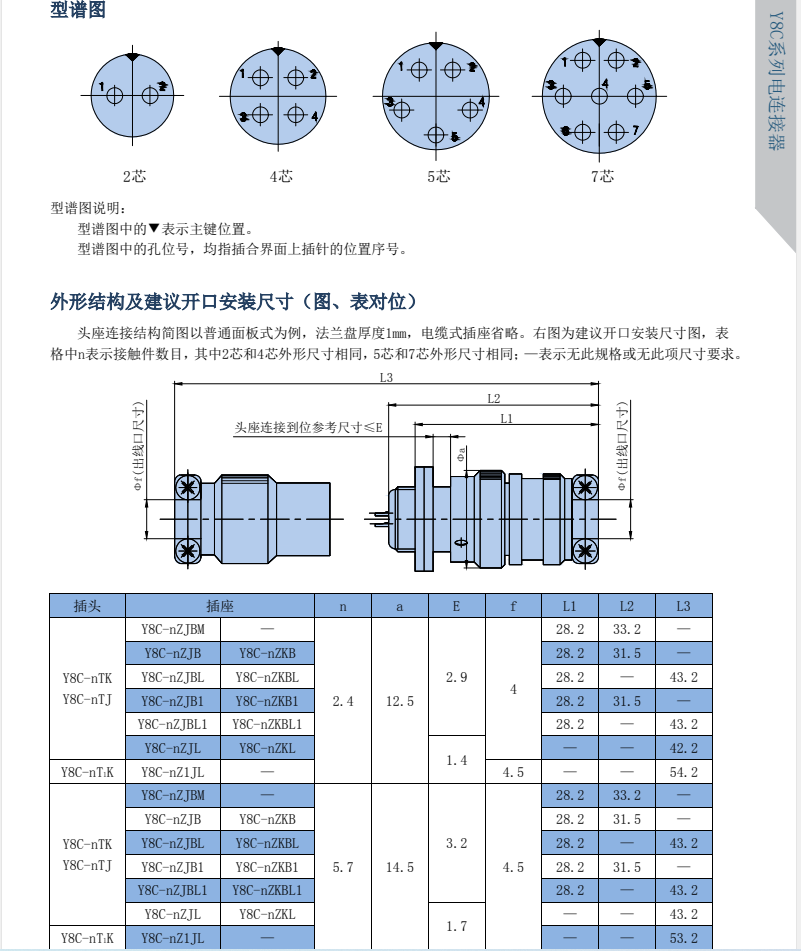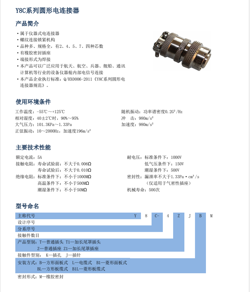 Y8C圆形电连接器,体积小,螺纹连接,芯数少,有2芯,4芯,5芯,7芯,排列稀疏,无击穿现象。
