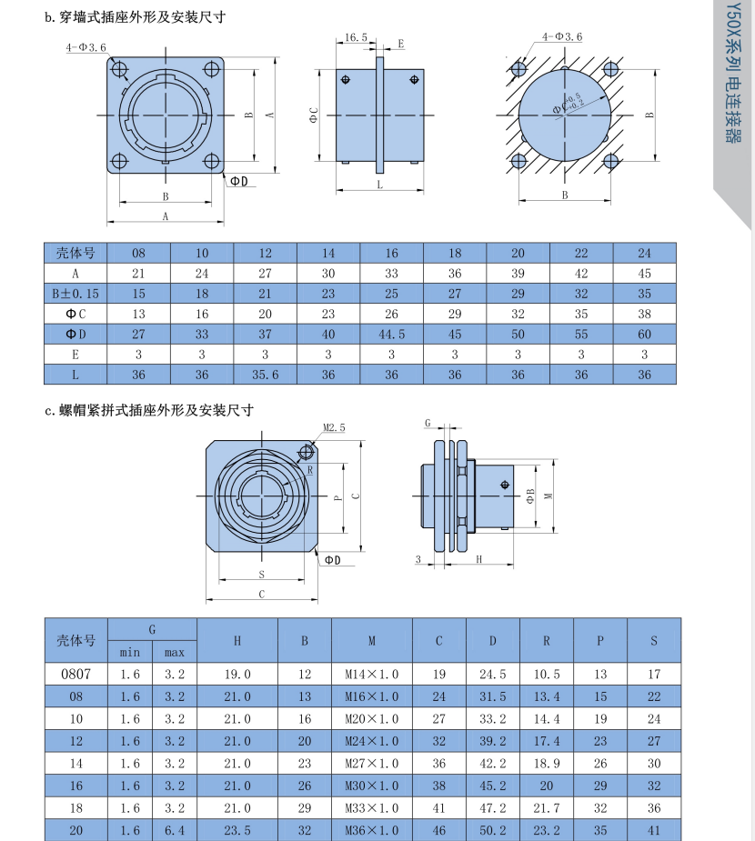 Y50H-1608ZJ10玻璃烧结插座,尺寸大小等同于Y50X系列连接器,插座采用玻璃烧结工艺,密封性能好,连接后防水防尘,有密封设计,一般用于真空设备数据的检测,室外液体罐电流的输送。