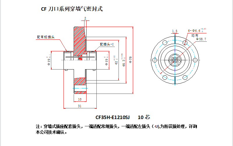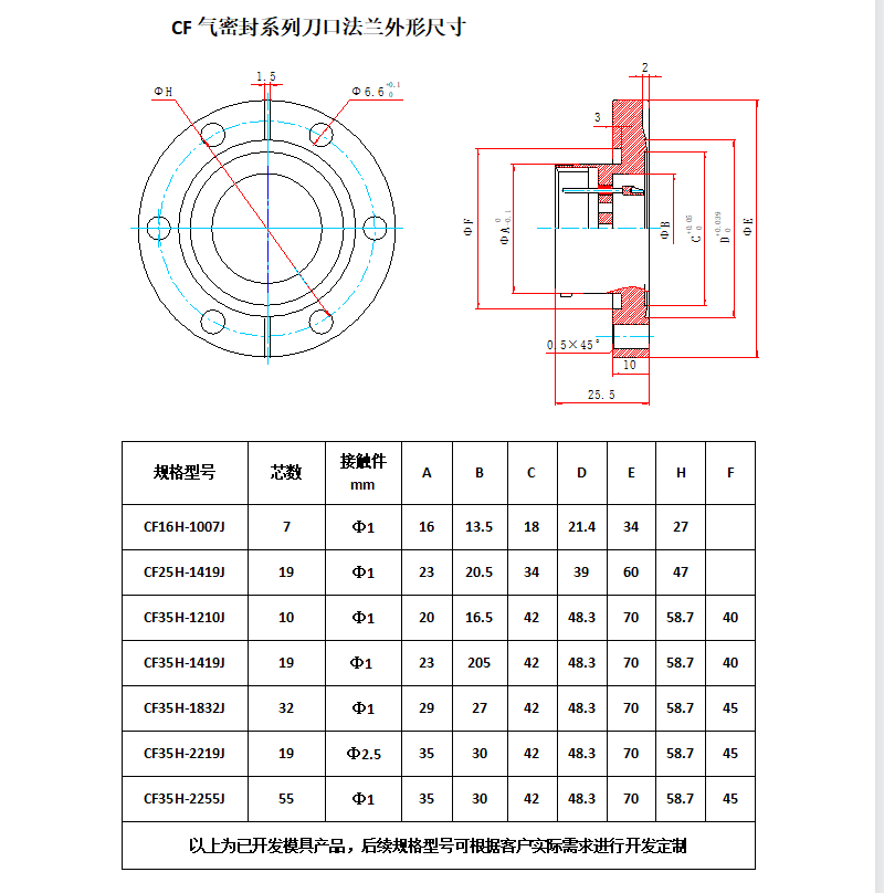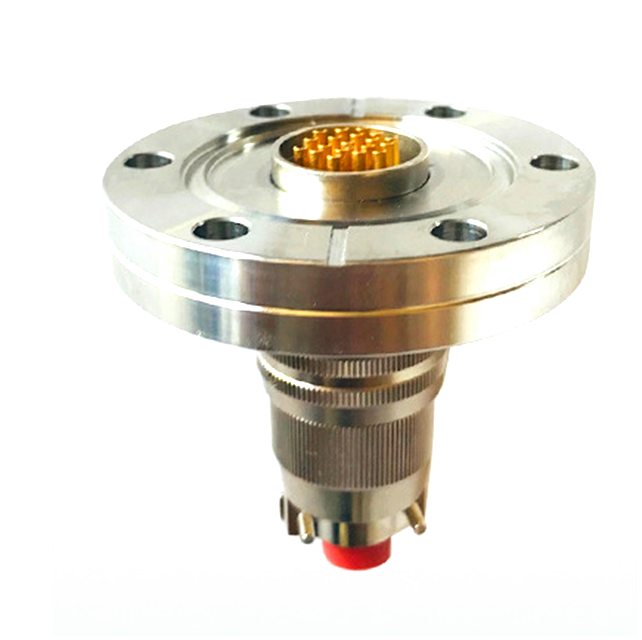 CF法兰玻璃烧结真空密封插座,利用标准CF法兰,选好连接器芯数,设计好用户选用的密封连接器,插座分固定式和穿墙式,