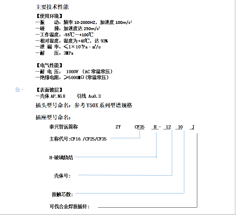 - Y50系列航空插头