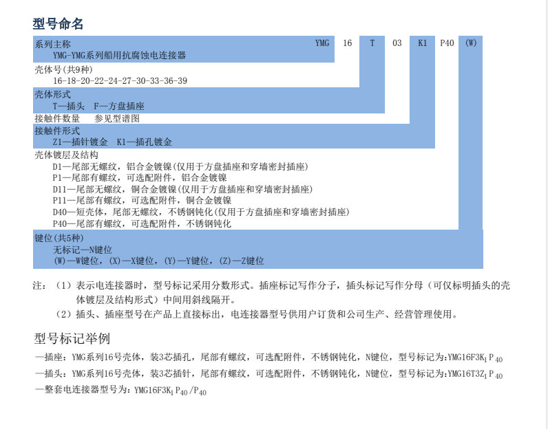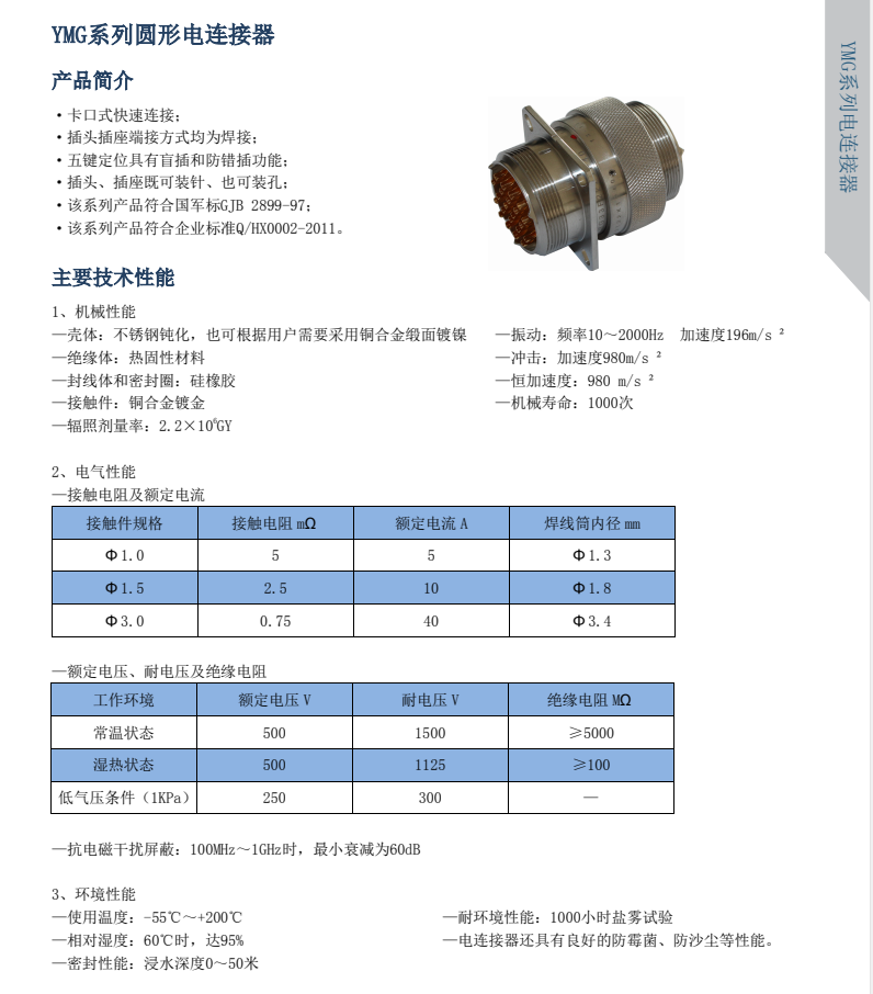 YMG系列船用抗腐蚀电连接器,一般采用不锈钢材料,质地坚硬,抗冲击,耐碰撞,更主要是防腐蚀,防水,一般用于室外恶劣环境,经得住电缆线的拖拉,短时间在水下工作。