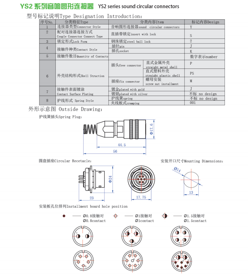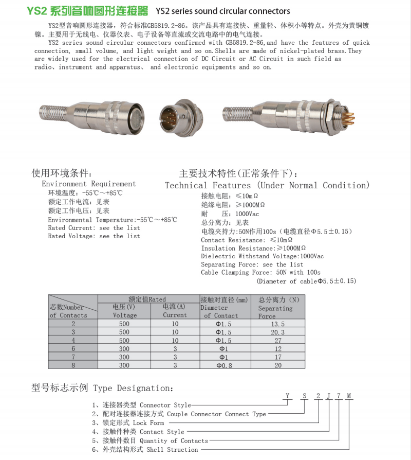 YS细小直插式圆形连接器,体积小,直径小,直插式,不锈钢卡珠二次锁紧,一般用于小仪器仪表与计算机之间的信号连接。