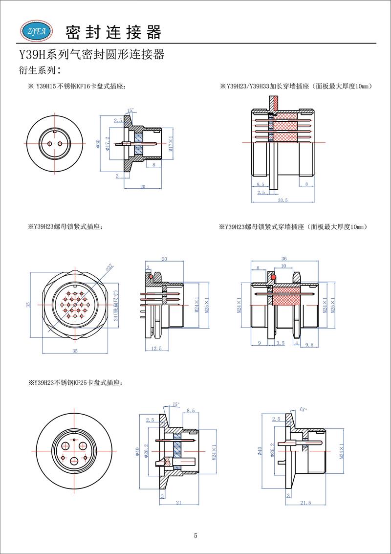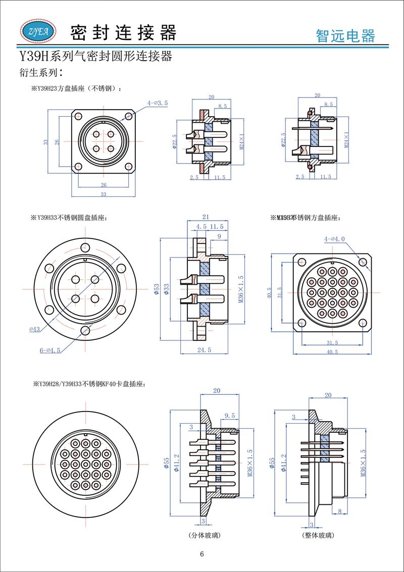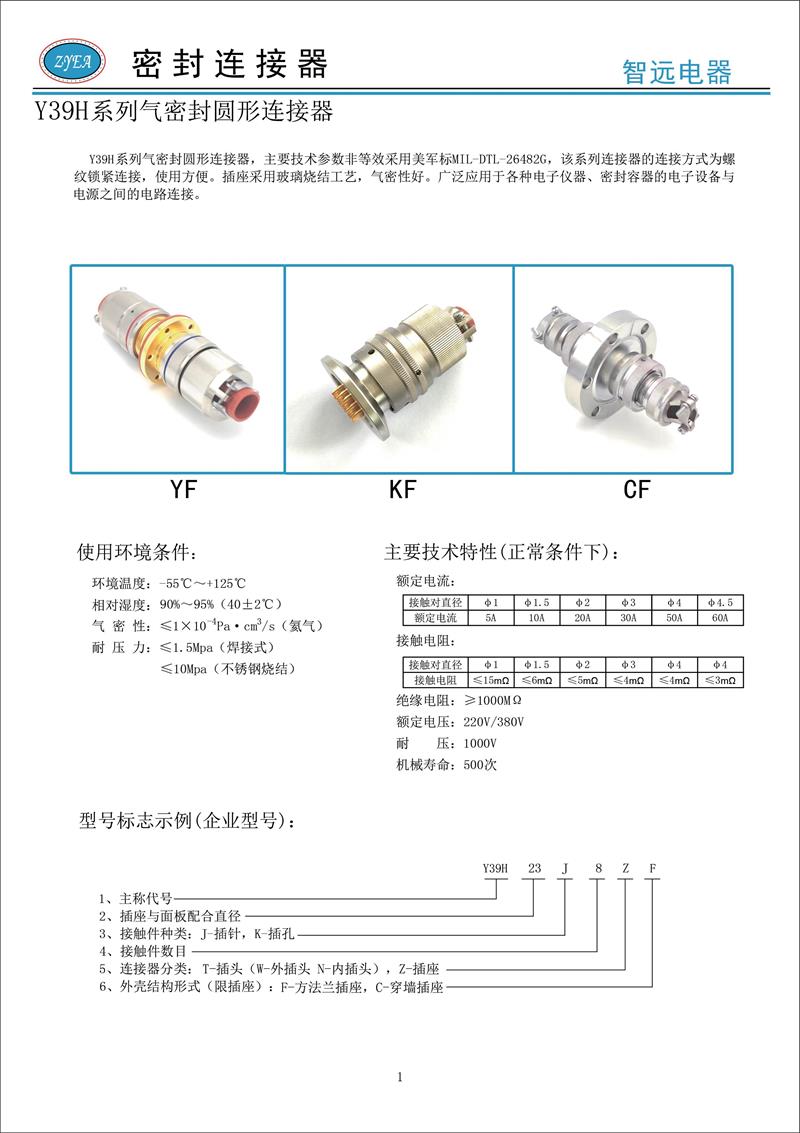 Y39H-2308ZJ螺纹连接口气密封插座,体积小,芯数多,螺纹连接。插座分面板固定式,穿舱式两种。插针与底板采用烧结工艺,与插座壳体采用焊接形式。一般用于工业设备库存量大,供货速度快,价格实惠。